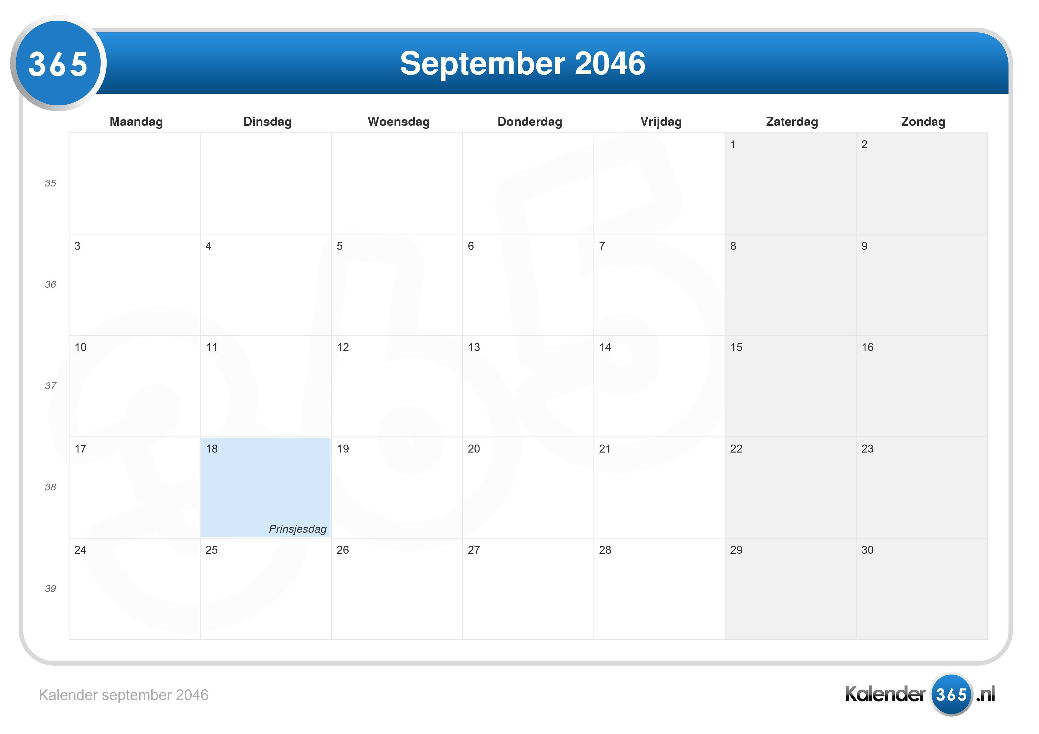 Kalender september 2046 (Liggend formaat)Ga naar Kalender 2046.