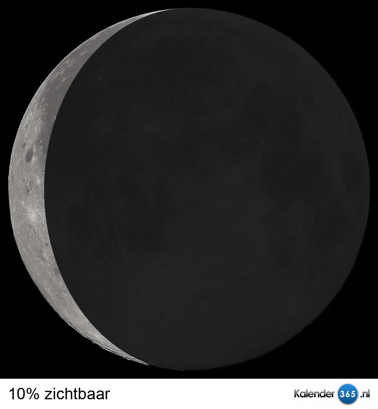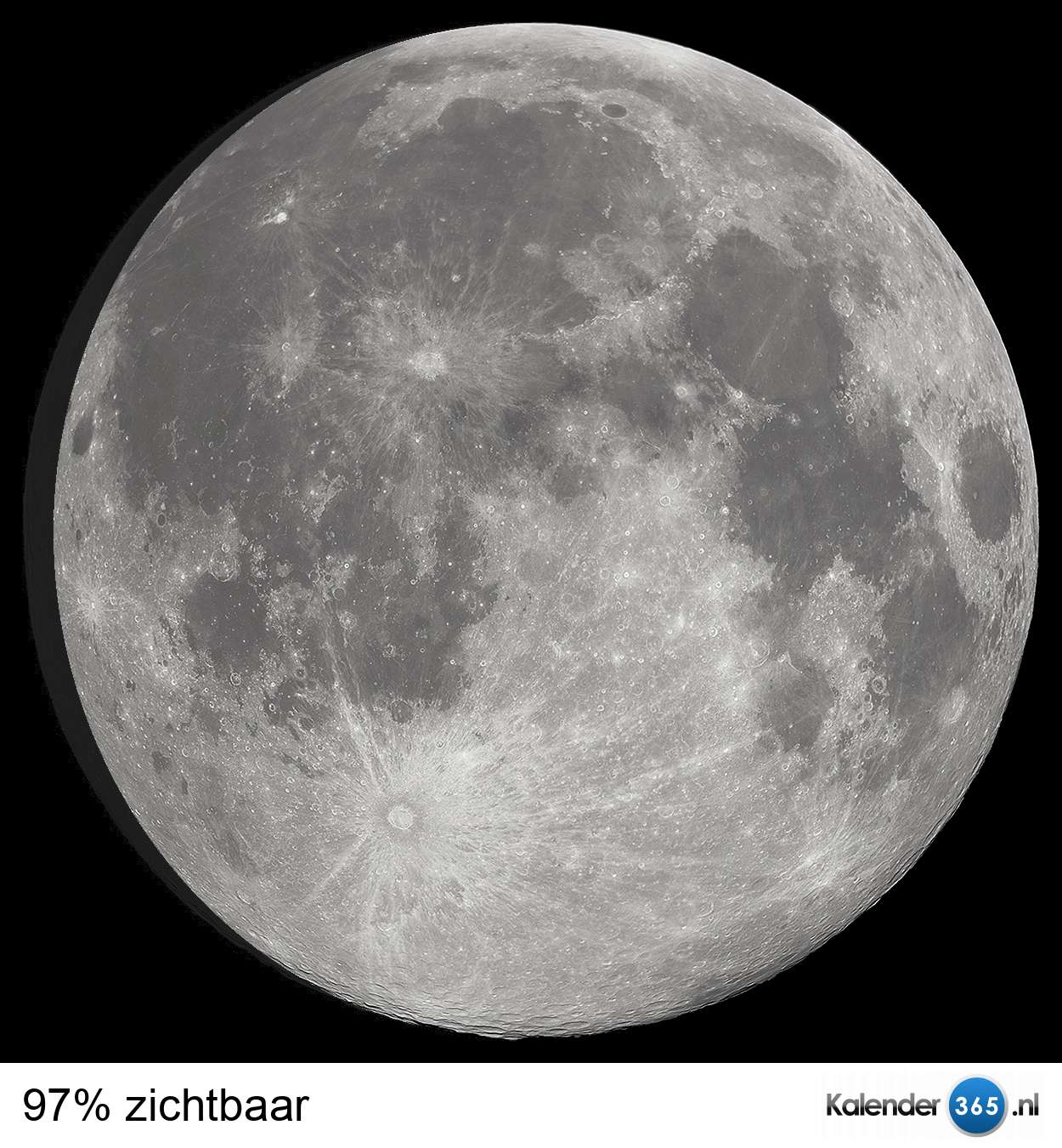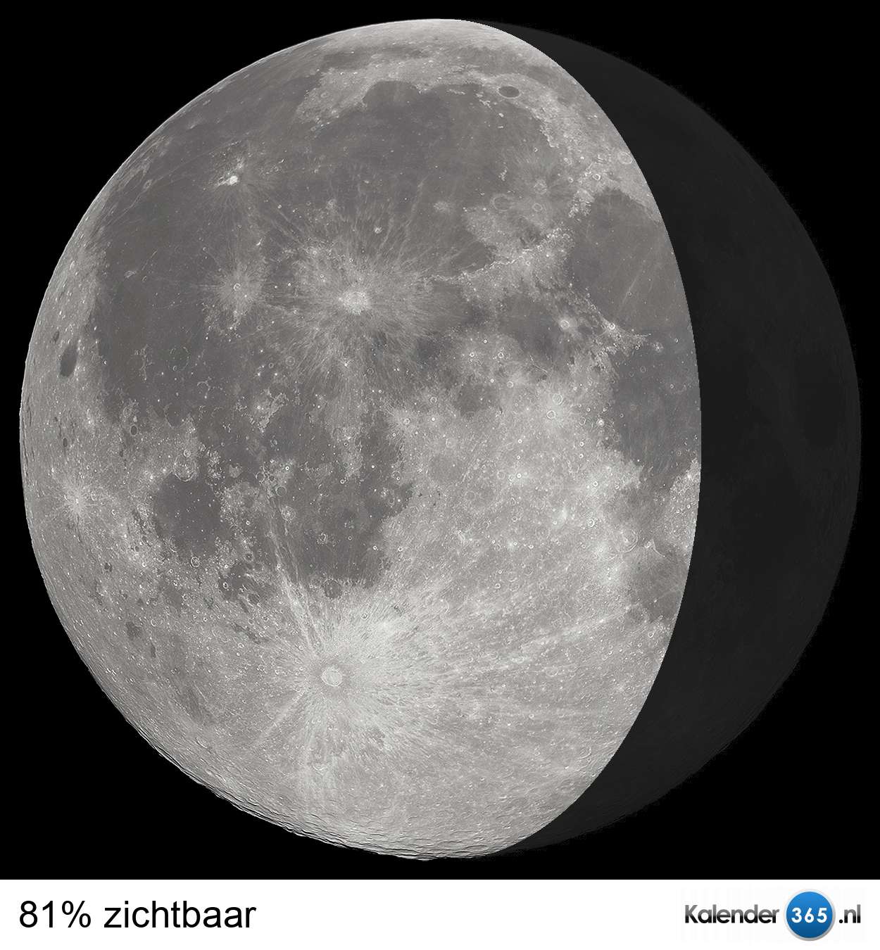 Bekijk hier de actuele stand van de maan. Het percentage dat de maan zichtbaar is staat vermeld onder de afbeelding.